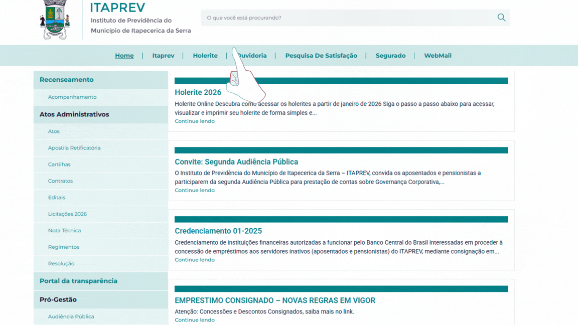 Após o login, clique na opção Holerite para visualizar seus comprovantes.